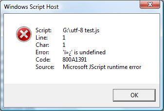 我不确定我是否做错了什么,但是如果我用JScript编码将其保存在一个.js文件中,我似乎无法通过Windows Script Host运行以下的UTF-8: