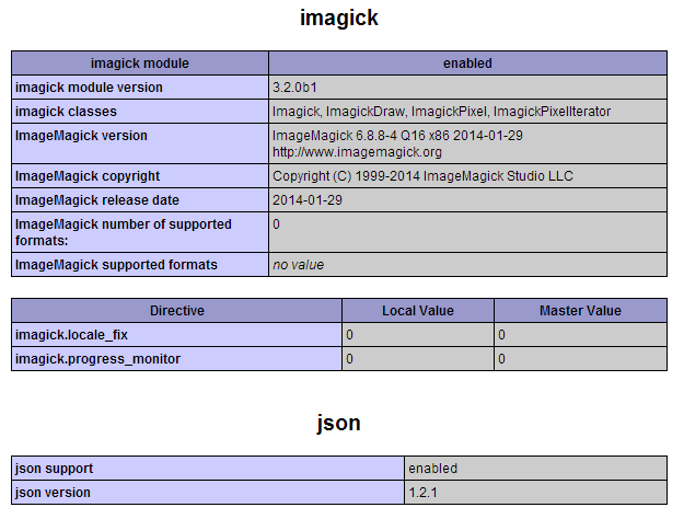 phpinfo()页面,并使用ImageMagick库版本标签查看'Imagick‘下报告的相应的ImageMagick版本bin文件夹并将所有IM_MOD_RL_...dll文件和FILTER_...dll文件复制到/apache/bin/文件夹,然后重新启动服务器,完成!
