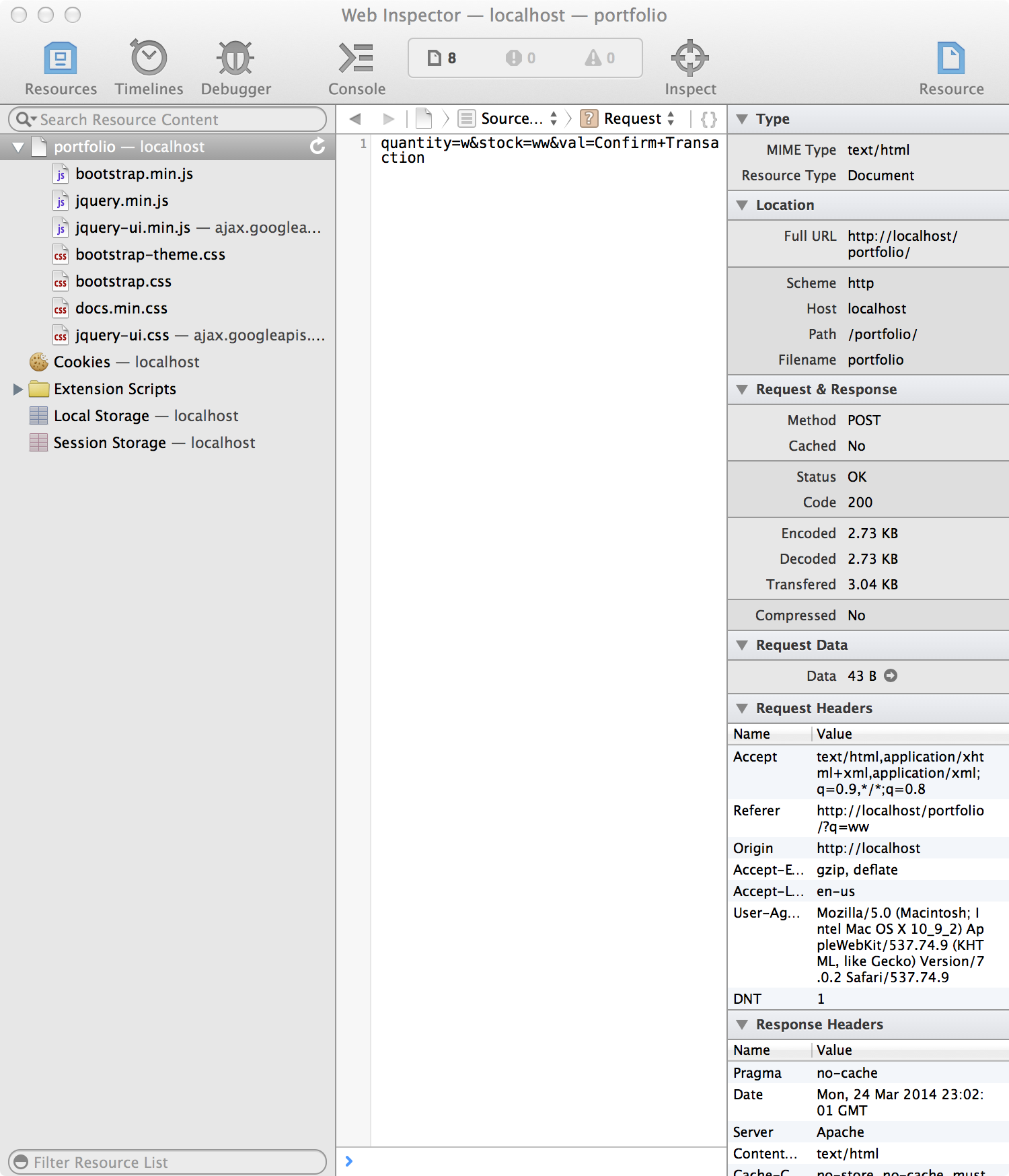 </form>这是我的网页检查员的一张图片,它显示了数据是被请求的: