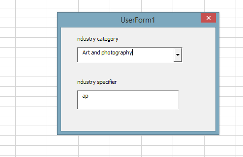 例如,当选择行业类别时,相应的行业代码应出现在文本框中。