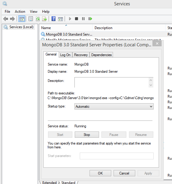 net start MongoDB如果您想要更改启动行为,那么以后可以使用GUI。