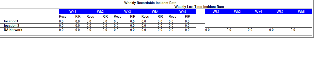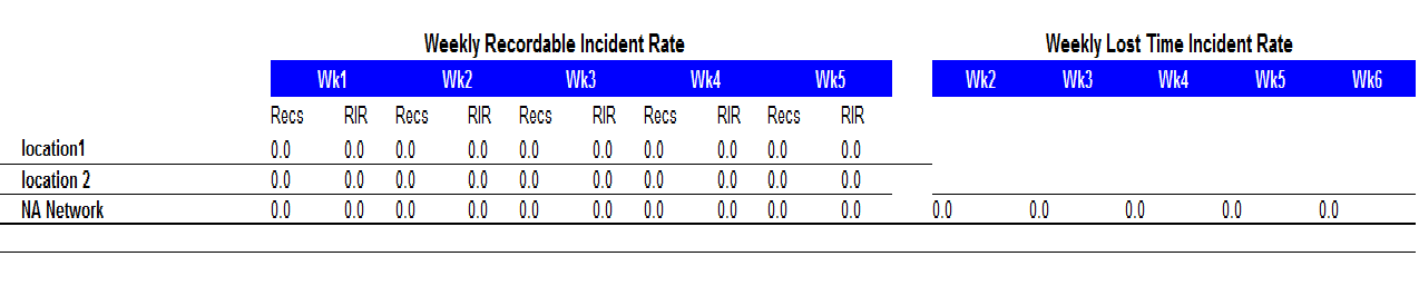 <th colspan="10" style="text-align:center">Weekly Recordable Incident Rate</th>