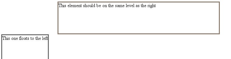 一个漂浮在左边,就像一个侧边栏。另一个自然“漂浮”到右侧,通过设置一个左边框。