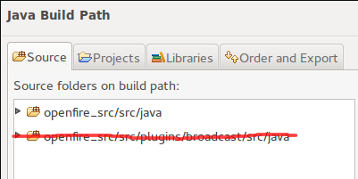 我已经解决了我的问题,简单地从构建路径中移除插件(实际上它不是broadcast插件,如图中所示)。
