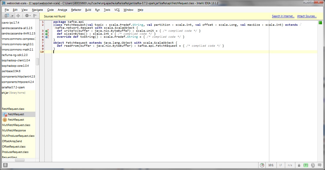 C:\Users\S80035683\.ivy2\cache\org.apache.kafka\kafka\jars\kafka-0.7.2-spark.jar!\kafka\api\FetchRequest.class但是,IJ无法解析器中的库中的任何类?