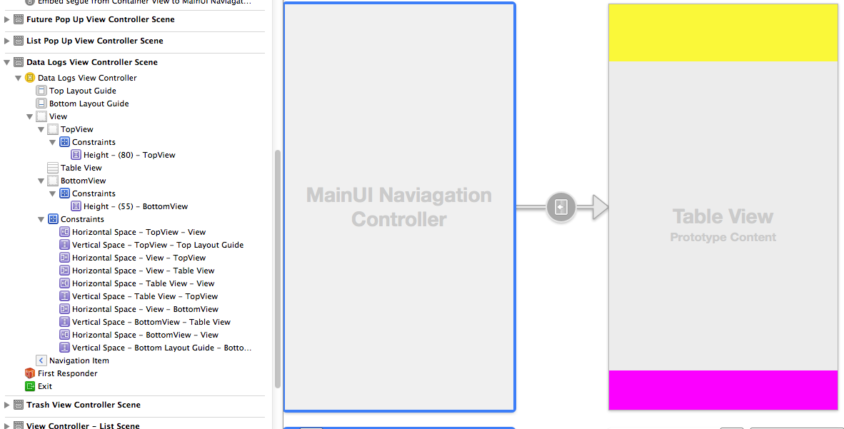 当我运行我的代码时,您可以看到粉色视图没有显示,我的猜测是,这是因为navigationBar,但是我使用了autolayout --虽然autolayout会自动处理这个问题。