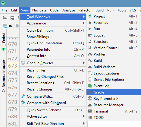 看看安卓工作室的右侧,您将看到gradle选项卡。单击它。