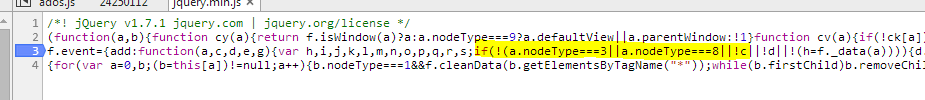 例如,在Chrome中,我在jquery.min.js中只有4行可供选择。如果我想编辑突出显示的部分,这几乎是不可能的,除非通过降级过程发送这段代码,或者使用像fiddler这样的工具重定向到不同的JavaScript。