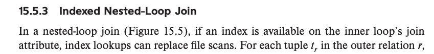 一些资料提到,“索引嵌套-循环连接”仅适用于等连接或自然连接,并且内部关系的联接属性上有索引可用。