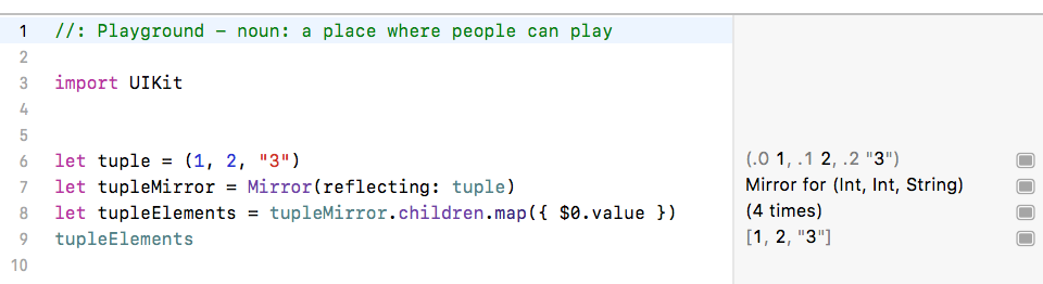 iterate(tuple.0.0) { println("\($0) => \($1)")} // no-op