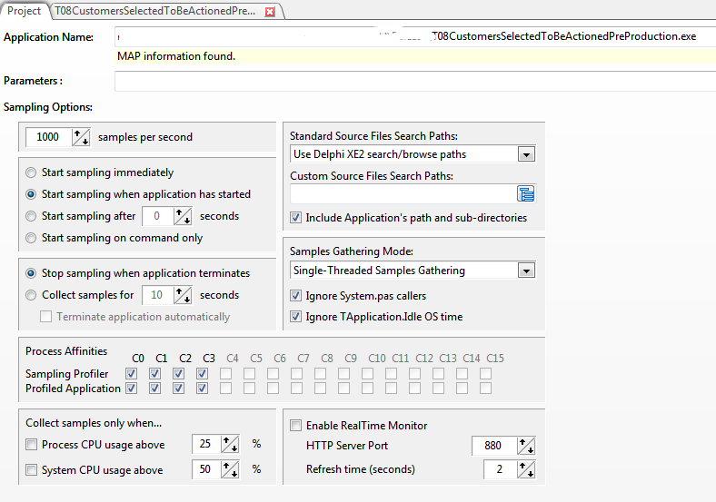 我在配置采样分析器(http://www.delphitools.info/samplingprofiler/)时遇到了一些问题。