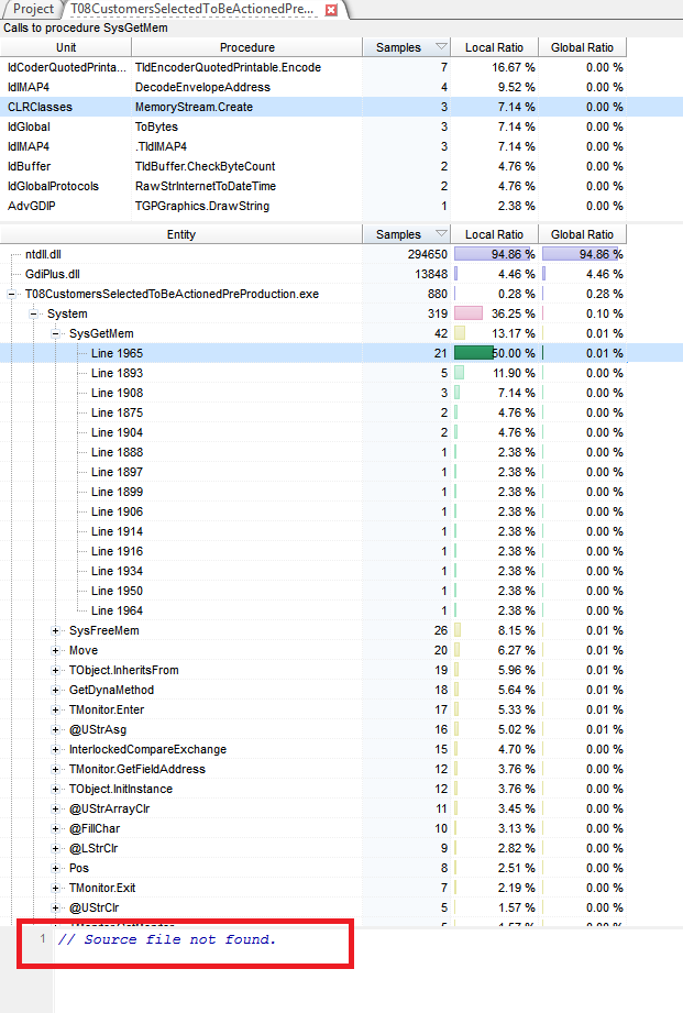 但是,在您在屏幕截图中选择的函数中,它将不会显示正确的代码,因为函数位于getmem.inc文件中,该文件包含在System.pas中。