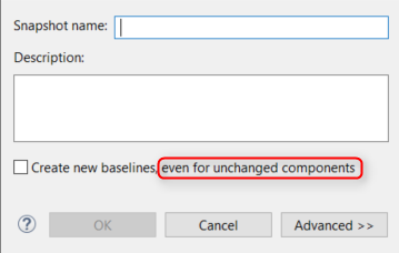 我怀疑,签入“创建新基线”将迫使为所有组成部分(包括已经处于基线的部分)建立基线。