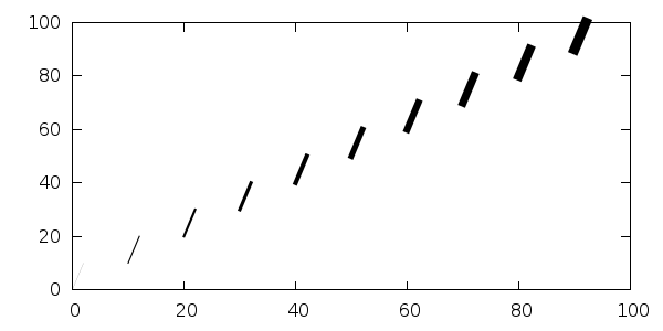 plot '+' using 1:1:(2):(10):($1+1) with vectors arrowstyle variable