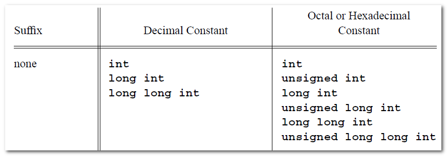 整数常量的类型是可以表示其值的对应列表中的第一个。