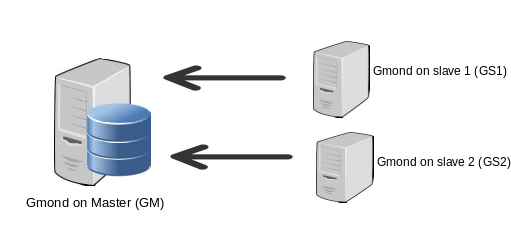 GS1和GS2通过UDP单播信道或UDP组播信道发送所有收集的度量。建议在每个gmond.conf中启用UDP单播,以便更容易地实现可伸缩性。