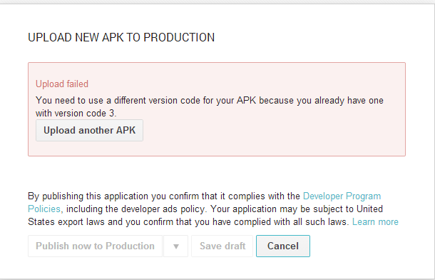 根据这个答案,如何解决“您的APK版本代码需要大于2”。在Google Play的开发者控制台里?,我刚刚将版本代码从2更改为3,它无法上传构建。