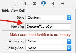 我收到这个错误是因为我没有在自定义单元格的童话板中写入标识符。