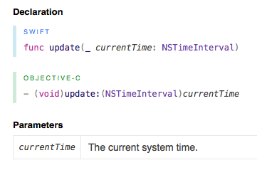 将currentTime从update:分配给ivar,然后将它用于当前帧的任何位置。注意,在处理帧时,当时间流逝时,您应该只处理当前帧传递到更新的引用时间:整个帧。