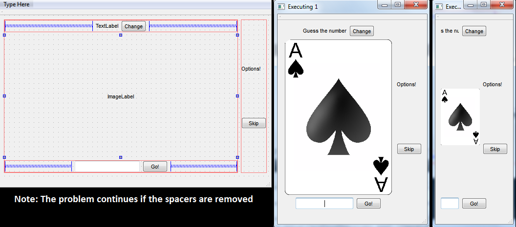 我正在创建一个程序(在Qt 2.8.1,Qt5.1.1中),它基本上显示了一个图像,在本例中是一个扑克牌(还有一些按钮、标签和一行编辑)。所有小部件都是垂直/水平布局,窗口布局是网格布局。