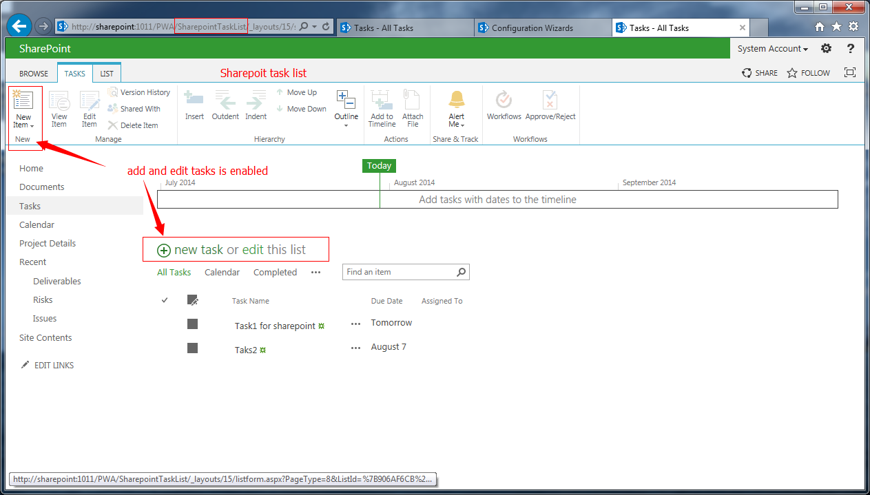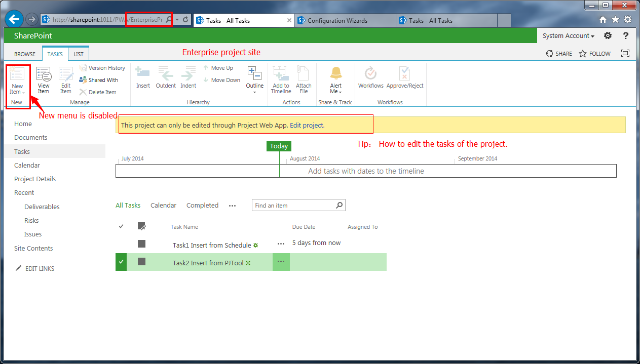 我们可以通过两种方式在PWA中添加项目:SharePoint任务列表、和企业项目
