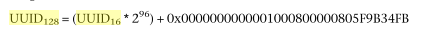 在询问了硬件工作人员之后,我得到了一个将UUID32映射到UUID128的角色示例如下: