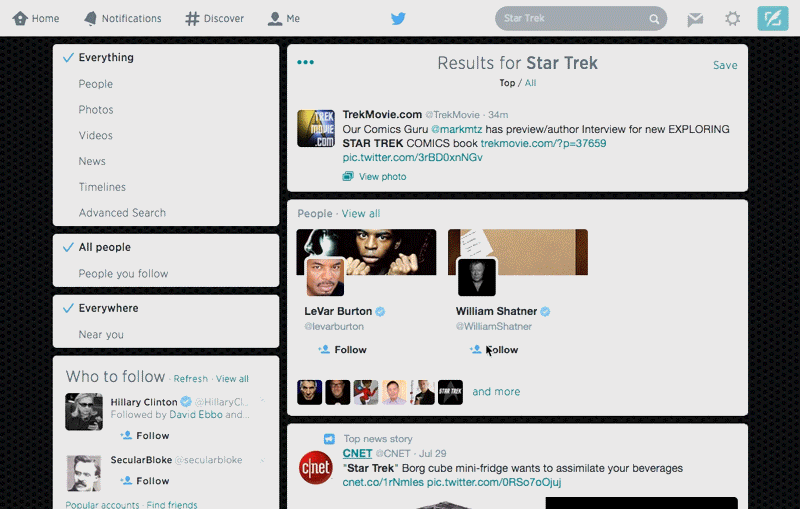 注意浏览器滚动条在到达底部时是如何向上跳的。Twitter到达底部,然后加载更多的数据来滚动。如果我滚动得够远的话,它最终也会开始清理页面顶部的数据。