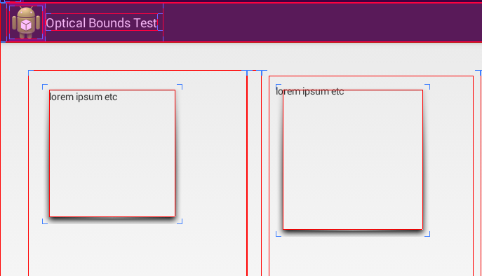 在父布局上设置layoutMode="opticalBounds"似乎会禁用9-Patch内容区域。下面的截图是一个简单的TextView: