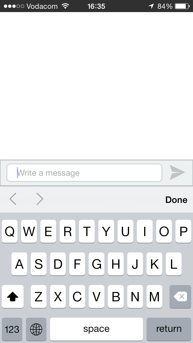 图2:我们点击一个写消息回复输入框--这是不正确的!正如你所看到的,当键盘打开时,整个屏幕上下移动。我们怎么才能解决这个问题?