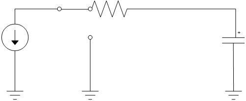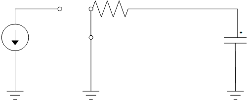 管是一个电容,容器是一个电容,电磁阀是一个简单的开关.该泵被建模为恒流源。