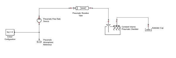 我有一个非常简单的气动模型:一个体积V的容器,一个空气泵,一个管子和一个电磁阀。