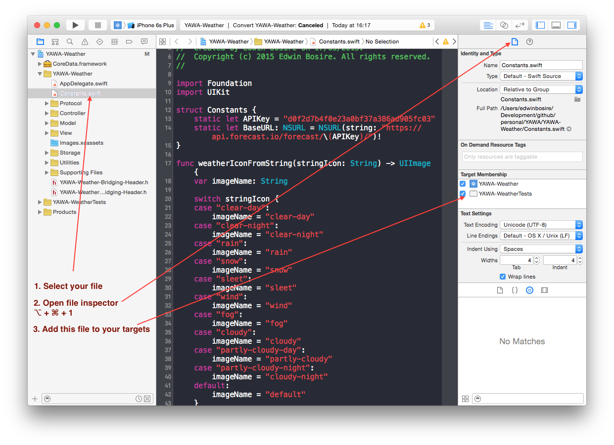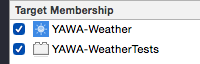 以查看目标成员资格。选择您的文件,然后打开文件检查器(⌥+⌘+ 1) 选项+命令+ 1
