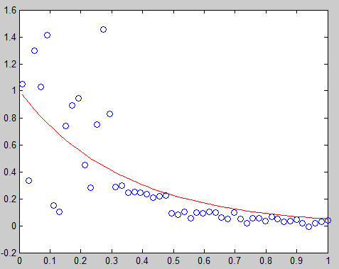 因此,我想要的是一个GUI回调机制,它允许我从数据中单击两个圆圈,并让它们改变颜色或其他什么,这表明lsqcurvefit只适合这个范围。在内部,它所要改变的就是lsq弧度调用。