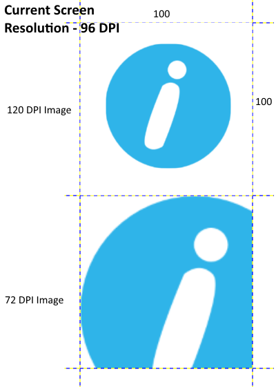 每英寸有72个点的图像( DPI )每英寸有72个点,而有120个像素的图像每英寸有120个点。因此,如果我们显示的是一英寸乘一英寸的图像,每一方将有72点表示72 DPI图像,120点显示120 DPI图像。