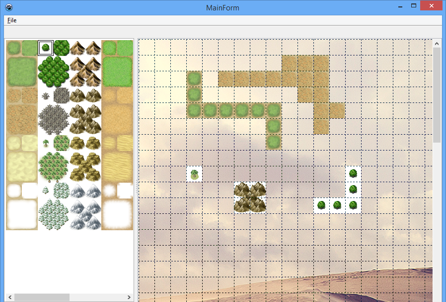 end;我已经尝试使用位图和png图像格式的tileset (屏幕截图上的左图像)。位图和png之间唯一的区别是,当CopyRect是png时,它甚至很难画出几块瓷砖,但是BitBlt设法画的没有任何明显的缺点。