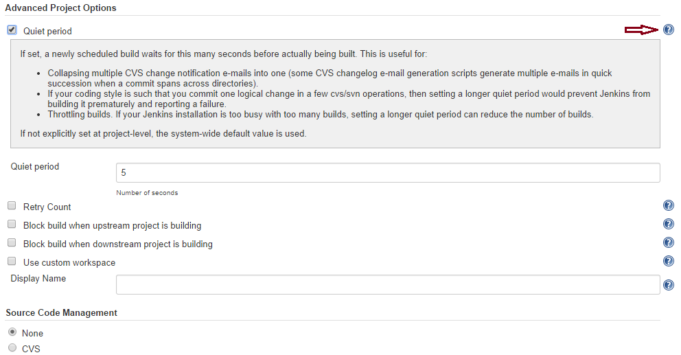 的选项。启用该选项。默认情况下,安装Jenkins时会出现此选项。这正是你要找的东西。一旦在P4中检测到新提交,它就会触发构建。虽然没有必要,但启用Quiet period