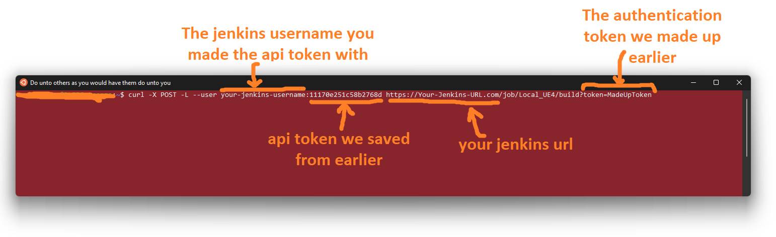 curl -X POST -L --user your-jenkins-username:11170e251c58b2768d4d26bc1db3d6395f https://Your-Jenkins-URL.com/job/Local_UE4/build?token=MadeUpToken