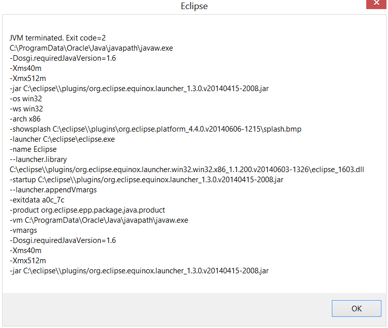 但是,当我双击eclipse.exe时,我的Eclipse不会启动!相反,我得到以下错误消息: