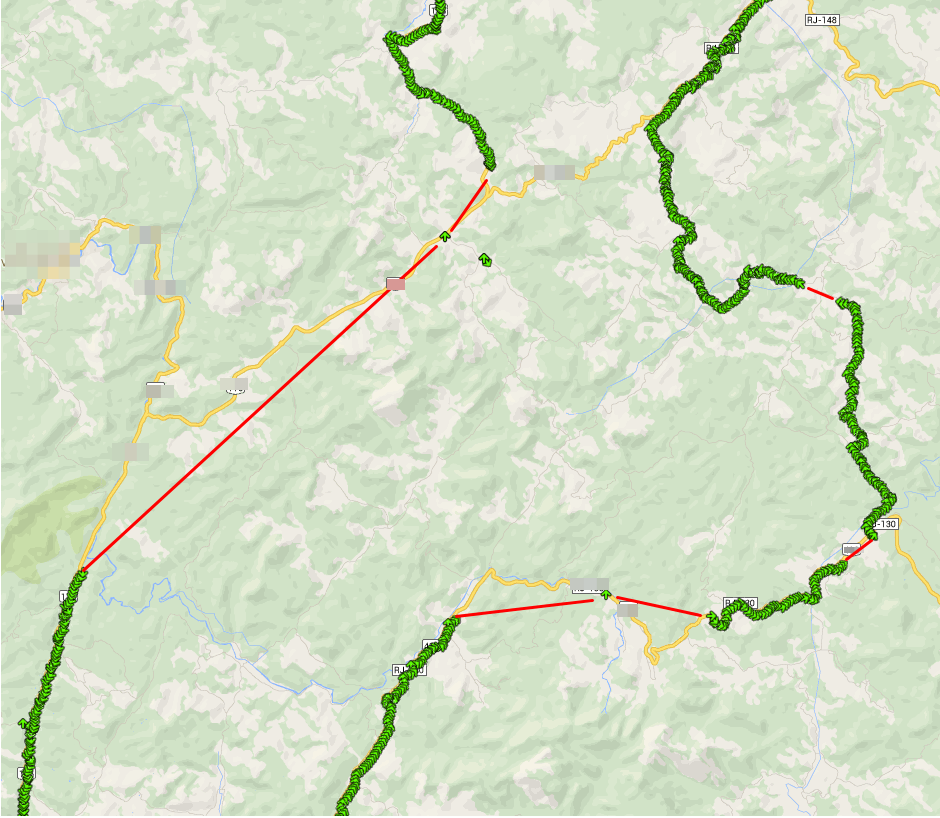 每个“绿色箭头”都指向该设备的location+direction。红线是我所说的“空白”。手机开着,应用程序在运行,位置管理人员一直在接收“卫星状态更新”,但在红线上,它得到了0颗“用于修复”的卫星。