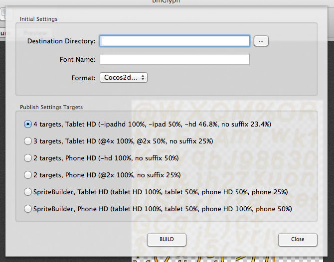 你可以查看我的帖子:使用GlyphDesigner的命令行工具生成用于与CCLabelBMFont一起使用的SpriteBuilder‘s字体文件的Bash脚本