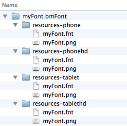 显然,您需要创建一个具有扩展.bmfont的子文件夹,其中包含名为“resource”的子文件夹,并具有特定于分辨率的位图字体版本。