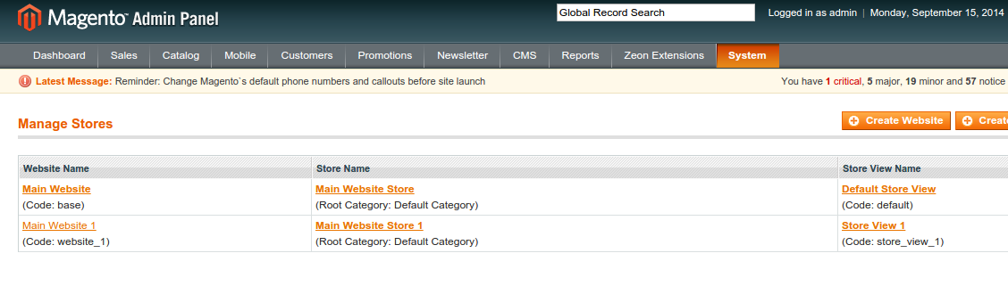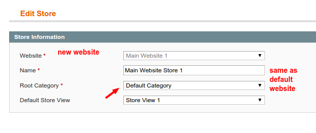 检查是否在与新网站相关的新建商店下设置相同的根类别。
