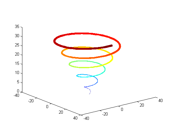 streamtube(X,Y,Z,PX,PY,PZ,zeros(1,10),zeros(1,10),linspace(min(z),max(z),10))这个脚本生成一组十个轨迹,然后用plot3绘制流线,但也用streamtube绘制流线。然而,streamtube所做的工作完全相同,用一根管子代替这条线。如果你愿意,你也可以设置每个管的宽度。