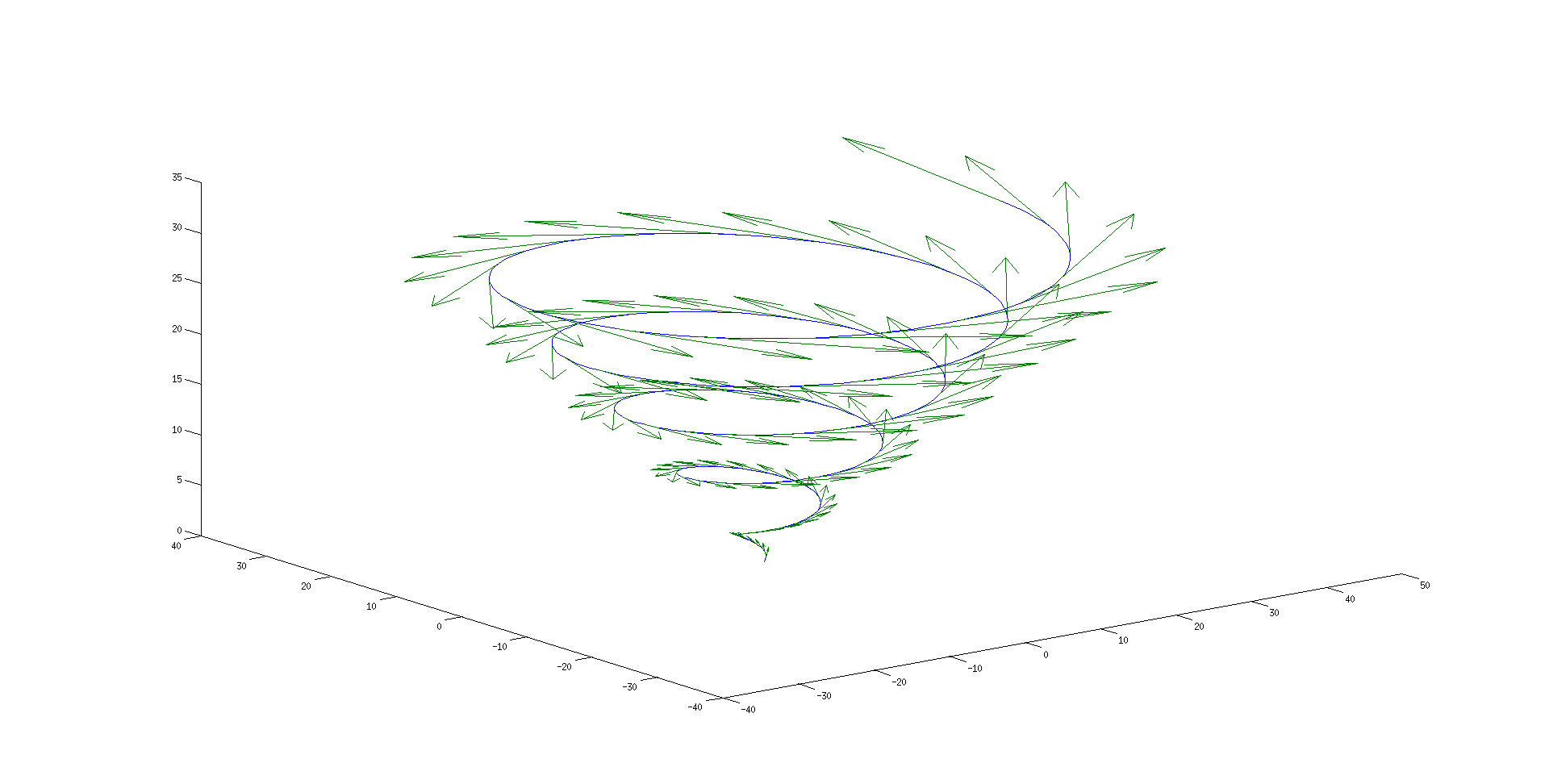 我在一个三维空间里有一组粒子轨迹,我想用三维流线来表示它们。我可以用plot3很容易地得到轨迹,也可以用quiver3来表示速度矢量。作为一个示例,可以考虑以下示例脚本