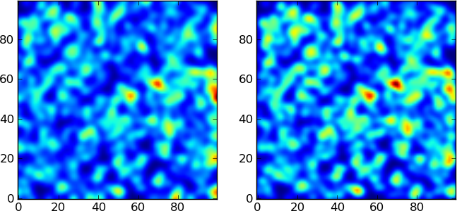 使用scipy.ndimage.filters.gaussian_filter,您将使用内核过滤2D变量(图像),而该内核恰好是高斯的。它实质上是平滑图像。