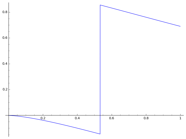 plot(integral(0.453*exp(-1.036*o)*sinh(sqrt(2.29*o)), (o, x, 10)), (x,0,1))