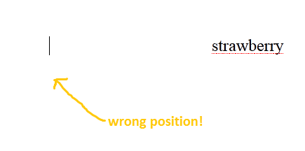 示例:在下面的片段示例中单击窗口的右侧:将出现"Strawberry“文本,但I键盘光标将位于错误位置。