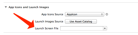 文件中似乎有用于启动屏幕的出入口。Xcode 6模板项目现在将创建两个文件- main.storyboard和LaunchScreen.xib。