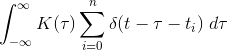 K是一个非常简单的滤波器,它只是一个有限的矩形盒(!)大小。我的数据是狄拉克三角洲时代t_i的列表。