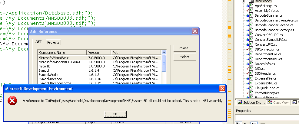 这就是我在解压缩SYCCFA~1.001、重命名它为System.SR.dll并尝试将其添加到项目引用(它声称它不是.NET程序集.??)时得到的结果: